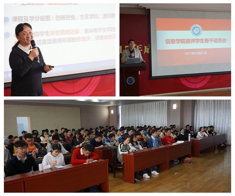 会上,万永菁详细介绍了此次本科教学工作审核评估的各方面情况,着重介绍了与学生相关的学风建设、学生学习效果及招生与就业等内容;反馈了前期预评估专家针对学风建设、学生表现提出的意见和建议;她结合评估工作的考察内容,号召学生要与老师一起建设严肃而活泼的课堂,学生应做好课前预习、保证不迟到不早退、维持良好的课堂秩序,并积极在课堂上思考,感受知识的力量;强调各班级骨干要作“全通滤波器”,将本次动员、培训内容原原本本的向本班级同学传达,借审核评估工作契机进一步强化建设优良学风。