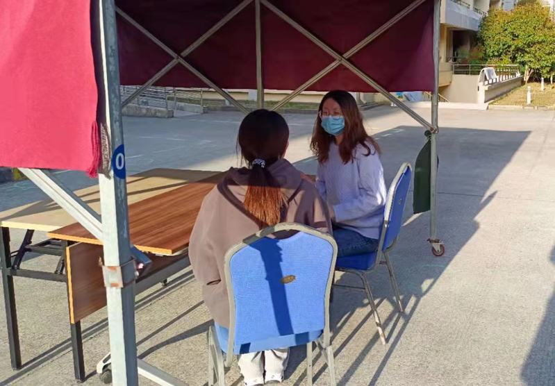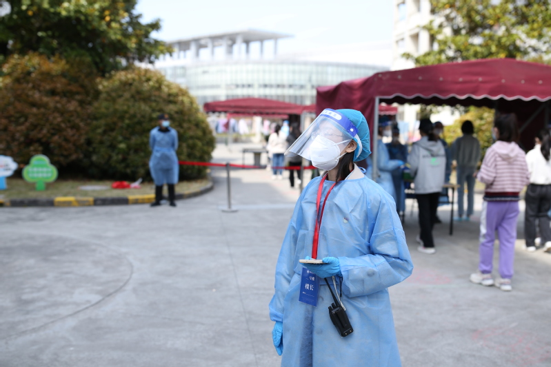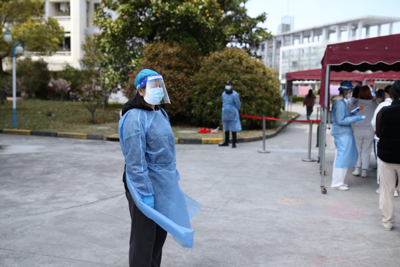 27舍是一个居住着化分、信息、生工和药学院近500名研究生的楼宇,这对于“借调”来27舍做楼长的高子钧压力不小。在做核酸的日子里,每天上午完成年级健康日报工作,就要赶去七围合做好集体核酸的准备工作。为了实现核酸检测排队有间距,高子钧和其他楼长、志愿者夜里就忙碌了起来,以腿为量尺,以画线为间隔。而作为kaiyun中国官方网站19级的辅导员,她每日定时查看并及时解决学生反馈的问题;定期下宿舍走访学生寝室,关心同学们的生活、学习近况。