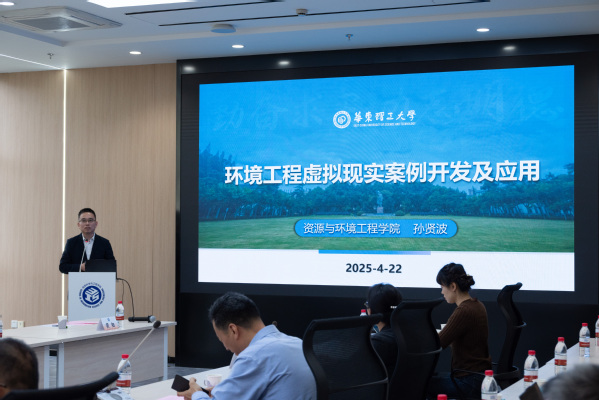 资环学院孙贤波教授(教育部学位中心视频案例项目负责人)以《环境工程虚拟现实案例开发及应用》为题,从项目背景、VR案例开发简介、应用效果及反馈等方面结合“污水处理厂”、“垃圾填埋场”等几个典型VR案例,做了详细介绍,展示了虚拟仿真技术与工程实践教学相结合,开发出相应的软件,在实践教学中的创新应用。