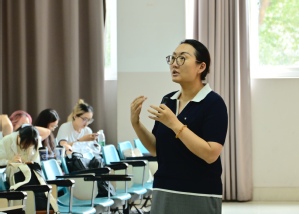 副院长和望利对学科和培养方案进行解读。她围绕学院学科方向、课程设置、培养阶段与要求、实践要求以及时间管理建议等核心内容展开讲解,详细说明各研究方向的定位与交叉优势,提醒大家提前锁定关键时间点、合理配置课程学习与科研投入,确保按期高质量毕业。