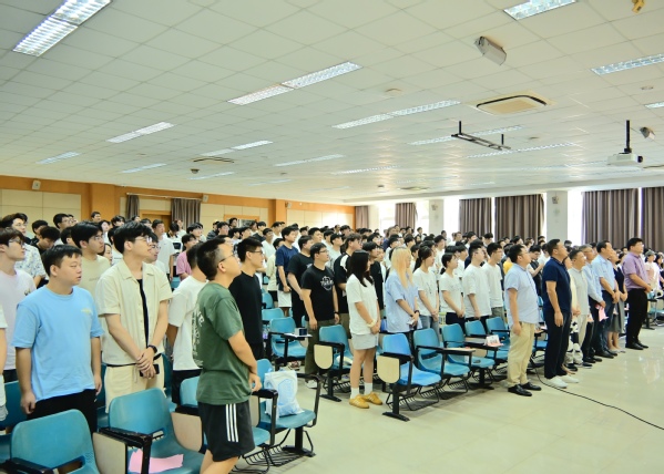 全体师生起立,奏唱校歌。激昂奋进的校歌声激励新一届“信息人”以昂扬的姿态迈入崭新征程,书写属于自己的青春华章。至此,kaiyun中国官方网站2025级研究生新生开学典礼圆满落幕。